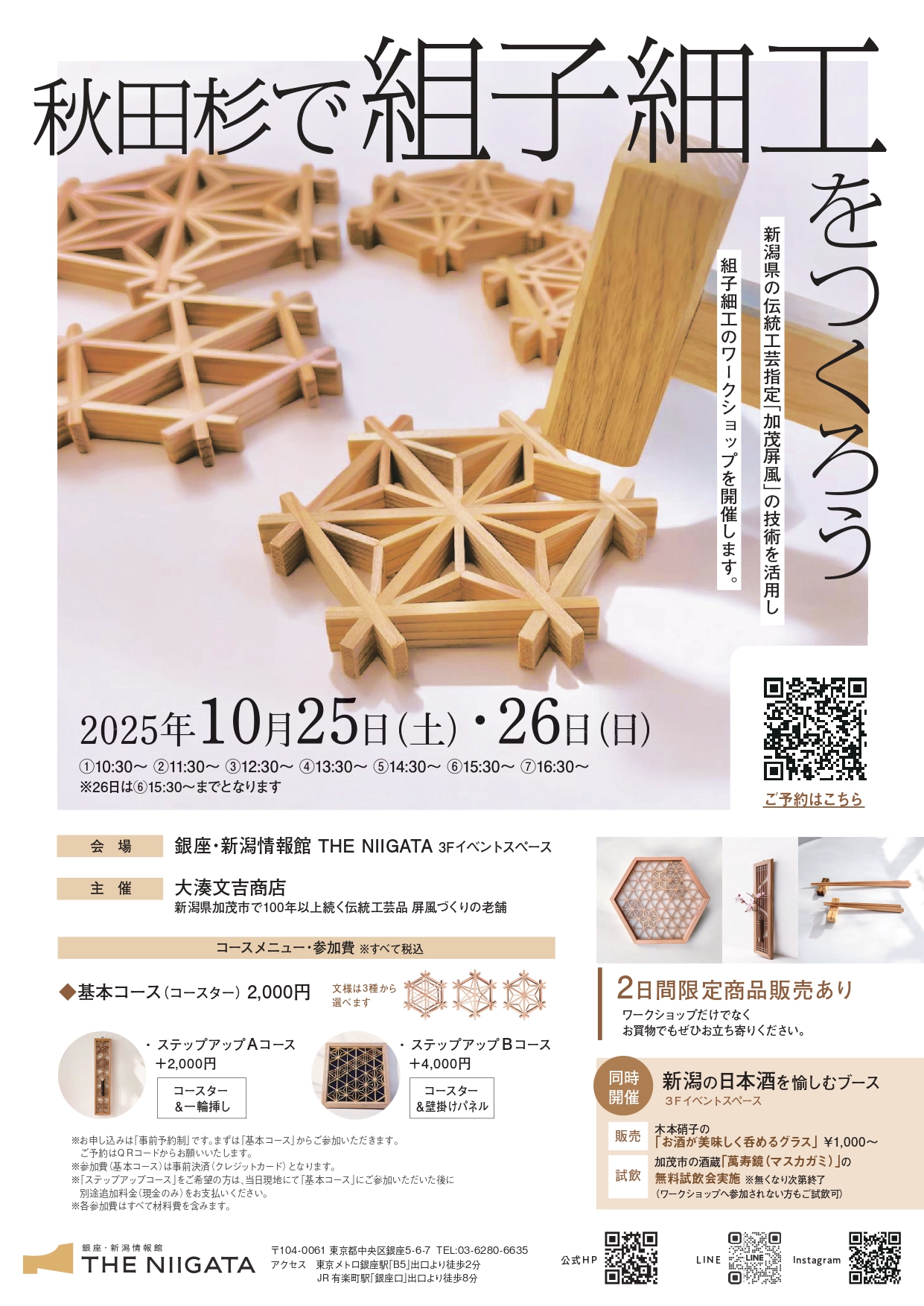10/25(土)・26(日)銀座・新潟情報館THE NIIGATAにてワークショップ開催!